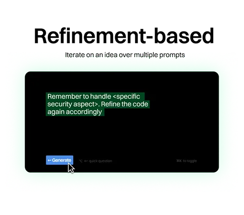 Refinement: Iterate on an idea over multiple prompts. After the LLM provides an initial code output, you provide a follow-up prompt to improve or correct it, especially by reminding the LLM to handle a specific security aspect.